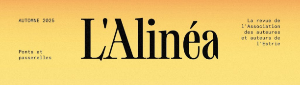Enfin, samedi 18, dès 15h30, Antonin Marquis vous convie au lancement de L’Alinéa dans l’Atrium du centre de foires. Sous le thème Ponts et passerelles, venez rencontrer les auteur.es des textes retenus et vous procurer une version papier de notre magnifique revue !