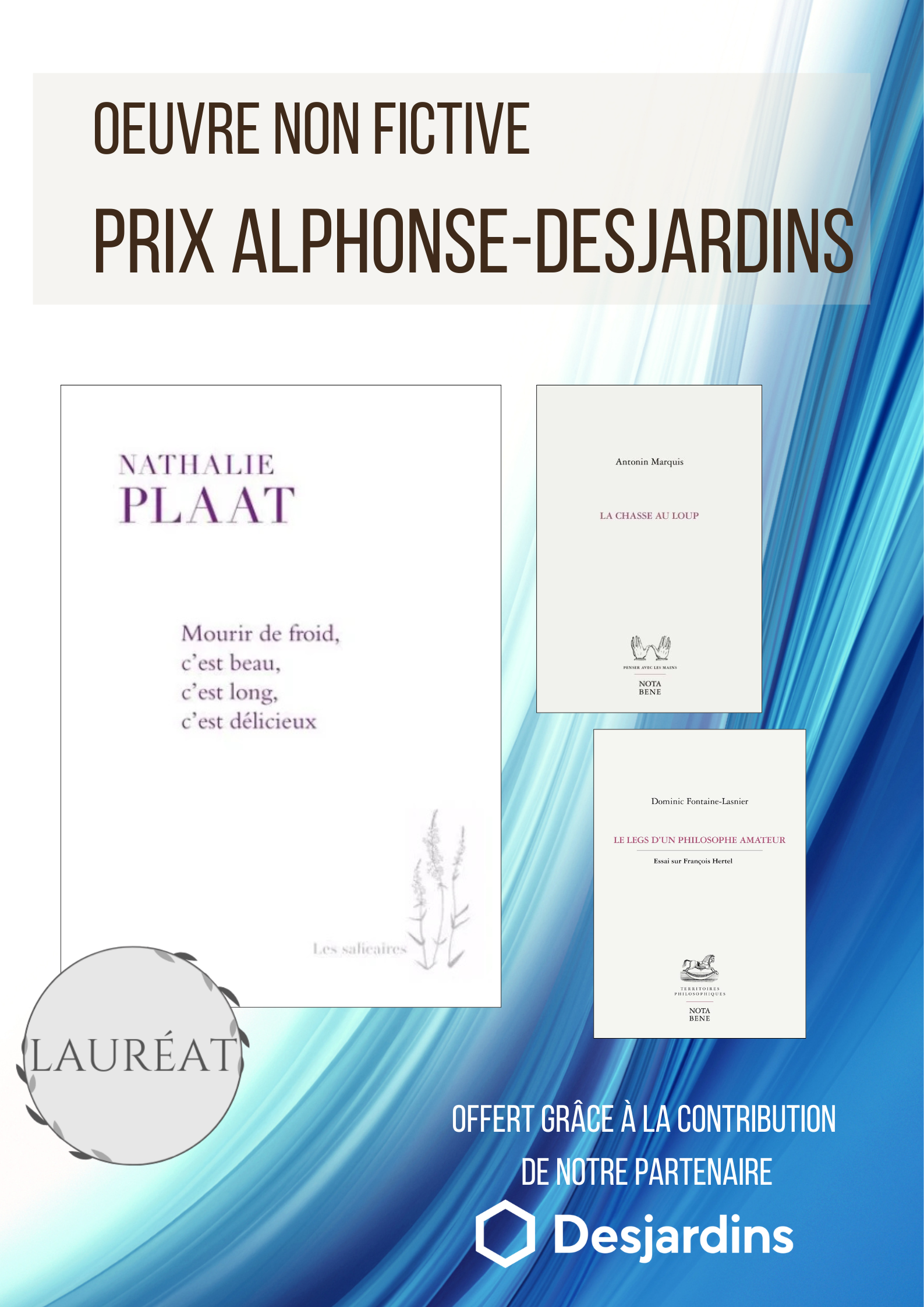 Lauréat : Nathalie Plaat, Mourir de froid, c’est beau, c’est long, c’est délicieux, éditions Presses de l’Université de Montréal
