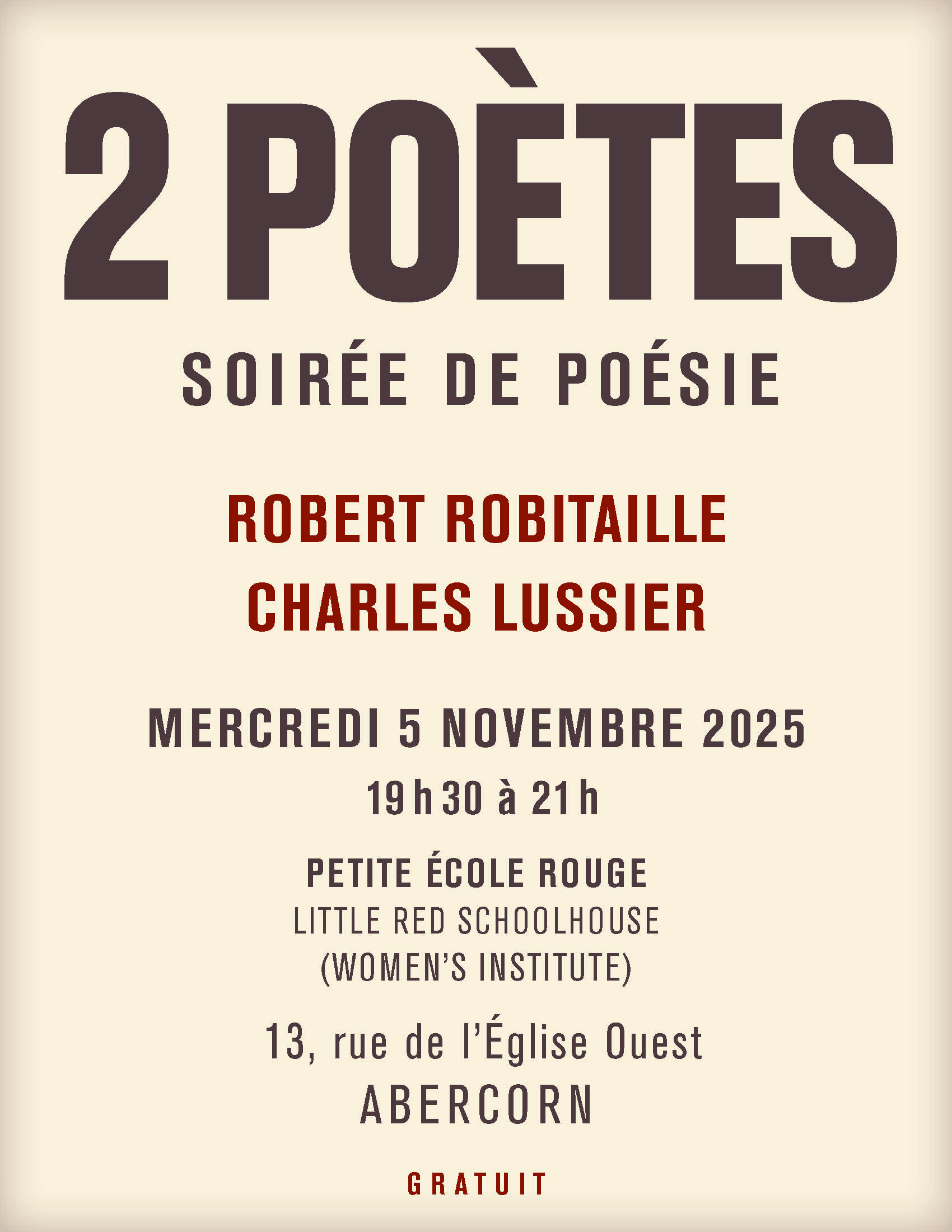 Charles Lussier et Robert Robitaille vous convie à une nouvelle soirée poésie, à Abercorn.