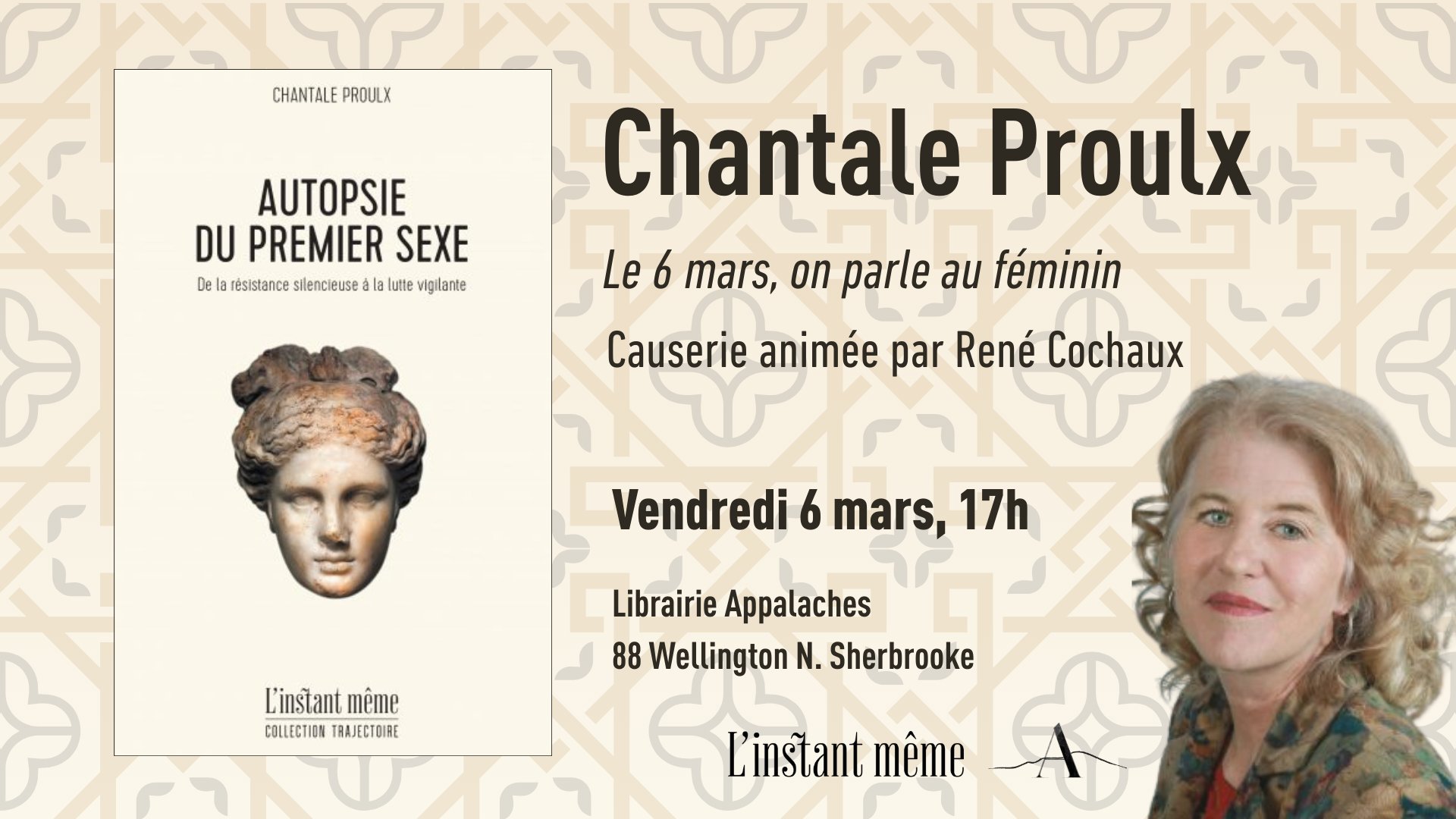 Pour marquer la journée internationale du droit des femmes, ce sera l’occasion de découvrir ou de redécouvrir l’ouvrage de Chantale Proulx, Autopsie du premier sexe, aux éditions L’instant même.